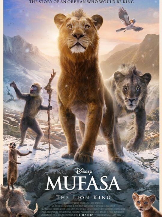 Fun fact: The film serves as a prequel to the original The Lion King, exploring Mufasa's early life and his rise to power as king of the Pride Lands. Interestingly, the movie features some of the original film's iconic characters, like Rafiki and Scar, but delves deeper into their backstories and relationships with Mufasa. This new perspective aims to enrich the lore of the beloved franchise, providing fans with fresh insights into Mufasa's character and the dynamics of the Pride Lands before the events of the original story. Road to the MountainsDirector: Barry Jenkins Mufasa: The Lion King is a prequel to the beloved animated classic The Lion King. The film explores the early life of Mufasa, showcasing his journey from a young cub to the legendary king of the Pride Lands. Key Elements of the Story: Mufasa's Origins: The film delves into Mufasa's upbringing, his relationship with his father, and the lessons he learns that shape him into a wise and compassionate leader. Relationships: It explores Mufasa's friendships and rivalries, particularly with characters like Scar, providing insight into their complex dynamics. Themes of Leadership and Legacy: The narrative emphasizes the responsibilities of leadership, the importance of family, and the values that Mufasa upholds as he prepares for kingship. Animation and Music: The film continues the stunning visual style of the Lion King franchise, combining advanced animation techniques with a rich musical score, likely featuring new songs alongside familiar themes. Overall, Mufasa: The Lion King aims to deepen the audience's understanding of one of Disney's most iconic characters while retaining the emotional depth and charm that fans love. 2024 1 h 58 min Animation Watch movie Buy ticketsCast: Aaron Pierre as Mufasa – the titular character in his younger years. Kelvin Harrison Jr. as Scar – exploring his backstory and relationship with Mufasa. Matthew Rhys as Zazu – the loyal advisor to Mufasa. Jasmine Cephas Jones as Rafiki – the wise mandrill who offers guidance. Timothy Spall as Mufasa's Father – providing insight into Mufasa's origins. Official trailer: Gallery: